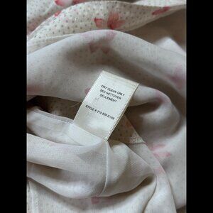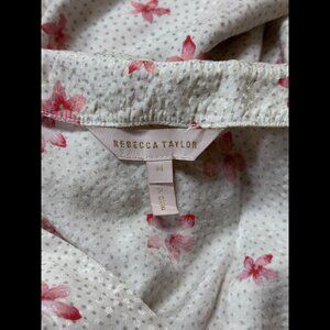 Rebecca Taylor Dress Medium V Neck Floral Pocket Metallic Polka Dot Ruffled Silk