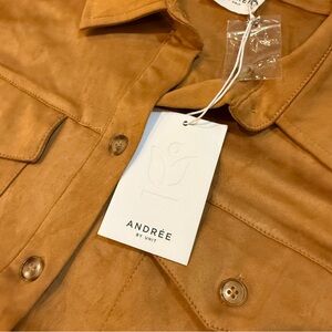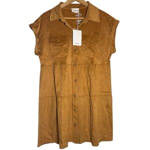 Andree By Unit Faux Suede Short Sleeve Tiered Button Dress Collared Womens L