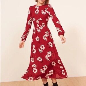 Reformation Virginia Crimson Floral Midi Dress Size 6