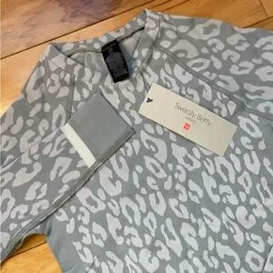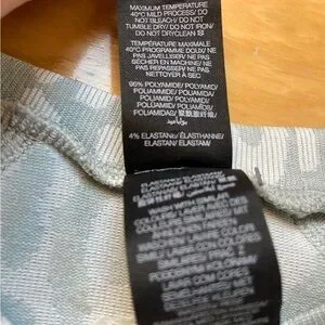 Details: Color is indicated as blue, but looks more bluish-gray with allover leopard print. Logo on the upper back and inside the hem. Designed to help regulate temperature as part of the HeatProtect line.
