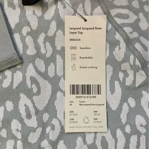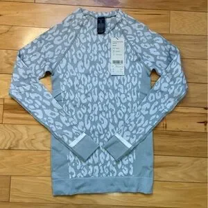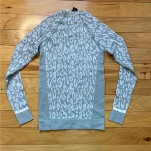 Sweaty Betty Leopard Jacquard Base Layer Top Womens Sz XS (0-2) Blue