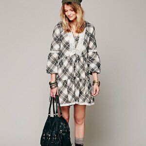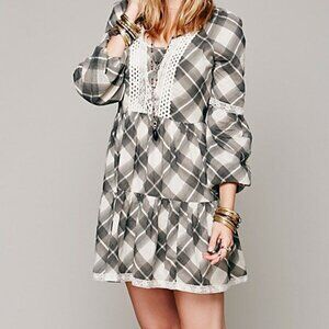 Free People Constantine Plaid White Black Ruffle Lace Babydoll Mini Dress XS