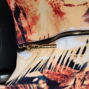 Gold tone back zip.