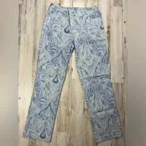 J. McLAUGHLIN Blue & White Paisley Light Weight Jeans Size 10 X 31.5 Inseam