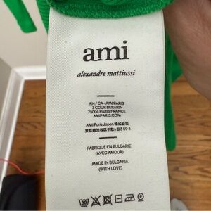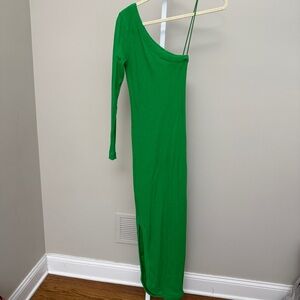 Green cotton one-shoulder asymmetric knitted dress from AMI Paris featuring asymmetric design, fine ribbed, one-shoulder