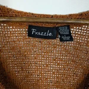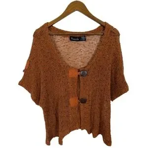 VINTAGE Frazzle Burnt Orange Open Knit Art To Wear Short SleeveCardigan Sweater