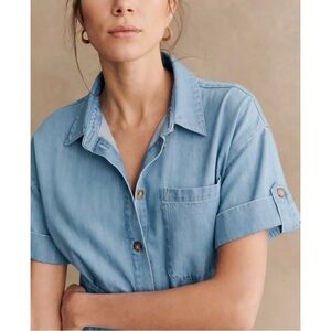 NWOT Sezane Denim Maxi Short-Sleeve Dora Shirt Dress