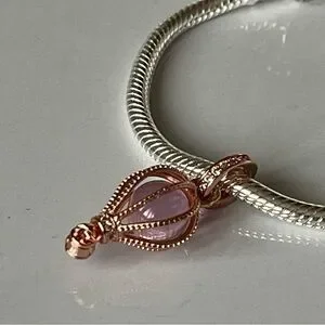 Rose Gold Plated Sterling Silver Sparkling Pink Hot Air Balloon Charm