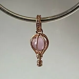 Feel Beautiful Everyday with this heart-stopping 14 kt Rose Gold plated Sterling Silver hot air balloon. With a beautiful pink crystal ball that is surrounded by cubic zirconia stones that cover the bail and the base of the balloon. Who will you take with you as you fly away?