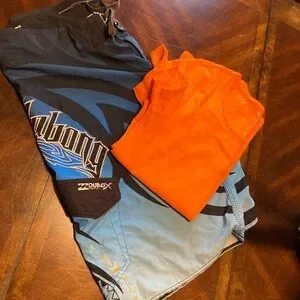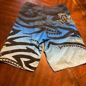 Billabong Blue and Black Board Shorts with Tribal Patterns