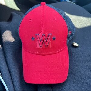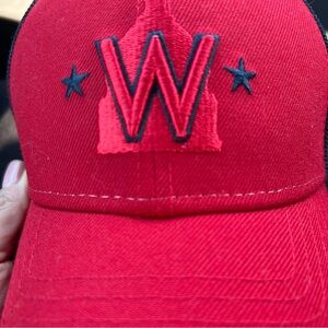 This Genuine Merchandise hat features a striking red front and a contrasting black brim, perfect for making a statement. The embroidered 'W' logo adds a unique touch, while the black mesh back panel ensures breathability and comfort.