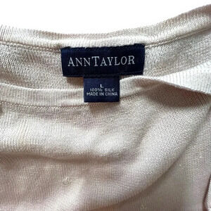 Ann Taylor 100% Silk Ivory Cream Camisole Tank with Clear Sequins Womens Large