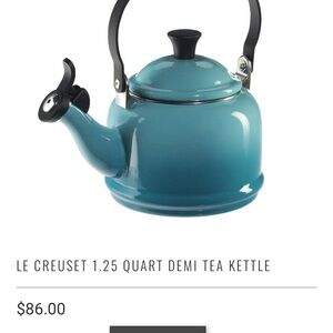 Le Creuset Classic Demi Tea Coffee Water Stovetop Kettle Caribbean Blue Carbon Steel Porcelain
