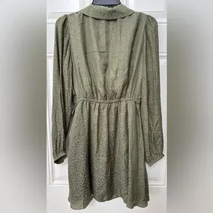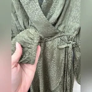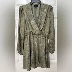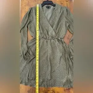 NWOT Steve Madden Mini Dress Size S Olive Green Subtle Leopard Print Faux Wrap