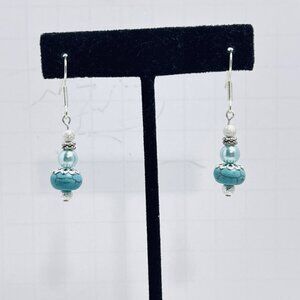 Silver Plated, Faux Turquoise & Faux Pearl Pierced Dangle Earrings (5719-1-2)