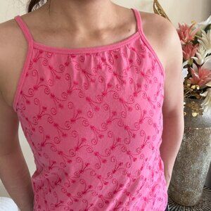 Y2K Lands End Pink Embroidered Cotton Tank Top