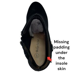 These are new and have never been worn. Somehow in the manufacturing process the forgot to put the padding in the right insole. A nice set of insoles and these would be a great pair for a huge bargain!