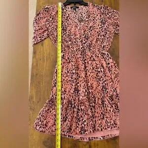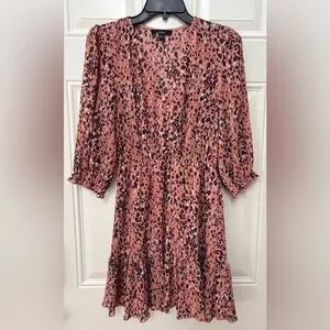 Lulus Size Small Dusty Rose Mauve Multi Print Mini Dress Half Sleeve V-Neck