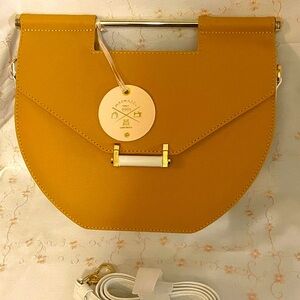 Brand new orange bag for special occasions .Long lasting leather . Special and unique shape to make a difference in a crowd . Strap included to also wear crossbody if you desire . You can also find pictures for matching sandals in my closet . Feel free to inquire for additional info . Will ship ASAP . Thanks for visiting my closet .