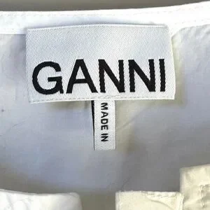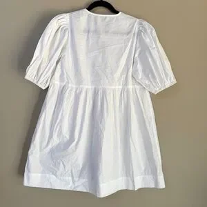 GANNI Cotton Poplin Tie String White Puff Sleeve Mini Dress EU size 34 / US size 2