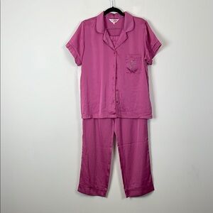 Juicy Couture Women's M Satin Pink Barbiecore Button Down Lounge Pajama Set