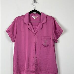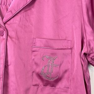 Juicy Couture Women's M Satin Pink Barbiecore Button Down Lounge Pajama Set.