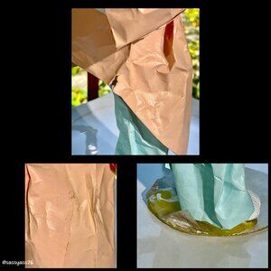 ▪️ Carries a bag in either hand (both paper mâché), one with green & white polka dot paper mâché eggs & the other with orange paper mâché carrots