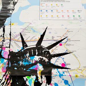 This unique piece of art is painted directly onto an authentic New York City subway map, not a traditional canvas, giving it a raw, urban street-art vibe. The map’s original folds add to its character, reflecting its real-world origins—not as flaws, but as part of the artwork’s story. Created by a talented NYC artist, this one-of-a-kind piece blends the city’s energy with artistic expression. If you're looking for something truly special with a street-art edge, this is it!