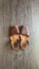 Beautiful brown timeless sandals. I purchased these as an orange pair and leather dyed them brown. Truly one of a kind! Just ready to rotate for something new