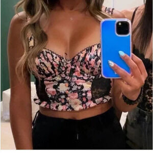 For Love & Lemons NWT Gardenia Long Line Bustier Crop Top Lovely LACE size Large