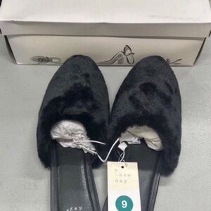 Cozy black faux fur slippers by A New Day. Perfect for lounging.
