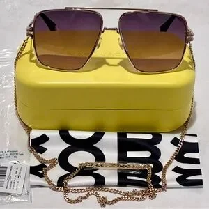 - Color: Gold Metal / Brown & Pink Lenses; Yellow Hard Case