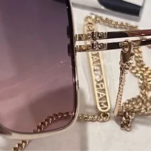 Marc Jacobs 59MM Navigator Sunglasses with Detachable Chain Gold Black/Brown-Pink