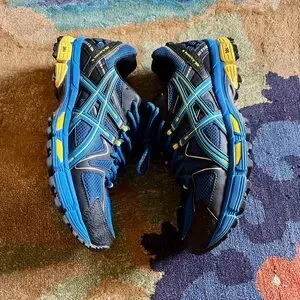 Asics Blue and Yellow Athletic Shoes Lightweight Breathable Design