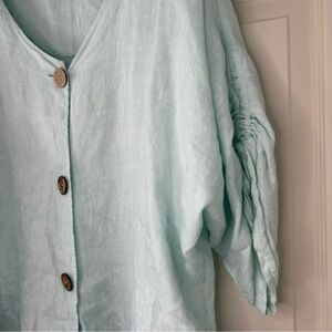Light Blue 💯 Linen Made in Italy Button-Up Women's Top.