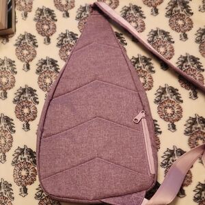Stylish pink crossbody bag by Vera Bradley. Features multiple zippered pockets and an adjustable strap.