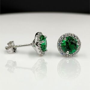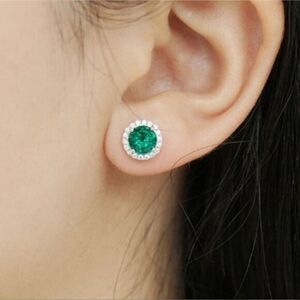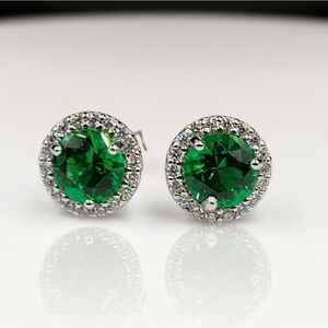 2.50CT Green Emerald Round Cut Halo Luxury Stud Earrings in Sterling Silver