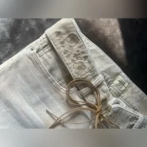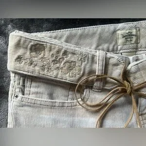 RARE A&F Vintage belted cream courdoroy with embroidery. Size 2.
