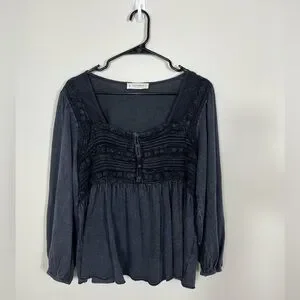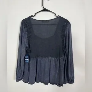Lucky Brand Embroidered Yoke Long Sleeve Peasant Top Size L