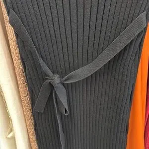 This elegant black ribbed knit dress offers a sleek and sophisticated look. Perfect for any occasion, it combines comfort with style.