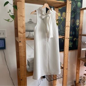 Super sweet women’s Tuckernuck Pomander Place White Blythe Ruffle Neck Bow Tie Back Swing Dress. Unlined - mini length - self tie bow on back - back zipper