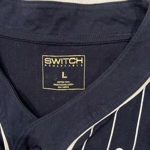 Switch Remarkable Legendary Black & White Pinstriped Shirt with Logo. SIZE L