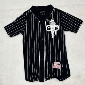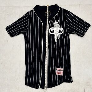 Switch Remarkable Legendary Men Black & white button down shirt - features striking white & black pinstripes and a prominent logo on the upper left side, offering a classic hip hop look. Ideal for casual outings, concerts, music festival events, it combines style and comfort seamlessly. The fabric is designed for durability and ease of wear 100% cotton. SIZE. L
