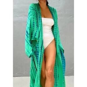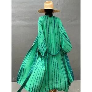 New Boho Flowy Ombre Tie Dye Beach Swim Coverup Maxi Duster Front Tie Green B500