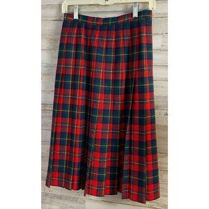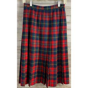 Pendleton Boyd Tartan Red & Green Wool Pleated Skirt Size 10 P Made In USA Women