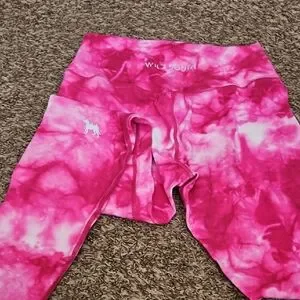 Bright and fun pink tie-dye leggings perfect for workouts. Comfortable and unique.