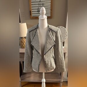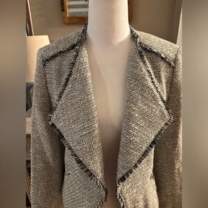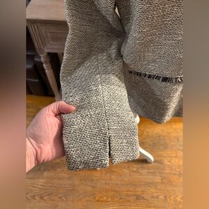 This LOFT gray blazer features a striking wide lapel collar and structured shoulders, offering a modern twist on a classic design. Its open-front style and tailored fit make it a versatile addition to any wardrobe, perfect for both professional and casual settings.
