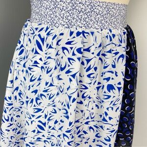 Elevate your wardrobe with this stunning Maeve Anthropologie Carrizo floral silk skirt in white and blue, perfect for any casual occasion. The skater style skirt features an elastic waist and lightweight material, making it a comfortable and stylish addition to your summer and spring outfits.