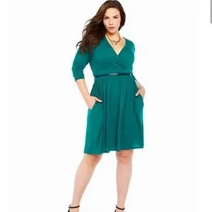 Torrid Lace Back Belted Teal Green Knit Dress