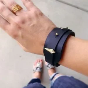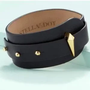 Edgy elegance at its finest!! Genuine leather and shiny gold accents create this bold and edgy wrap cuff. The shiny gold spikes and tapered notches allow for an adjustable functionality. Fits SM - LG wrists. 2 1/2β width. Bundle & Save!!!